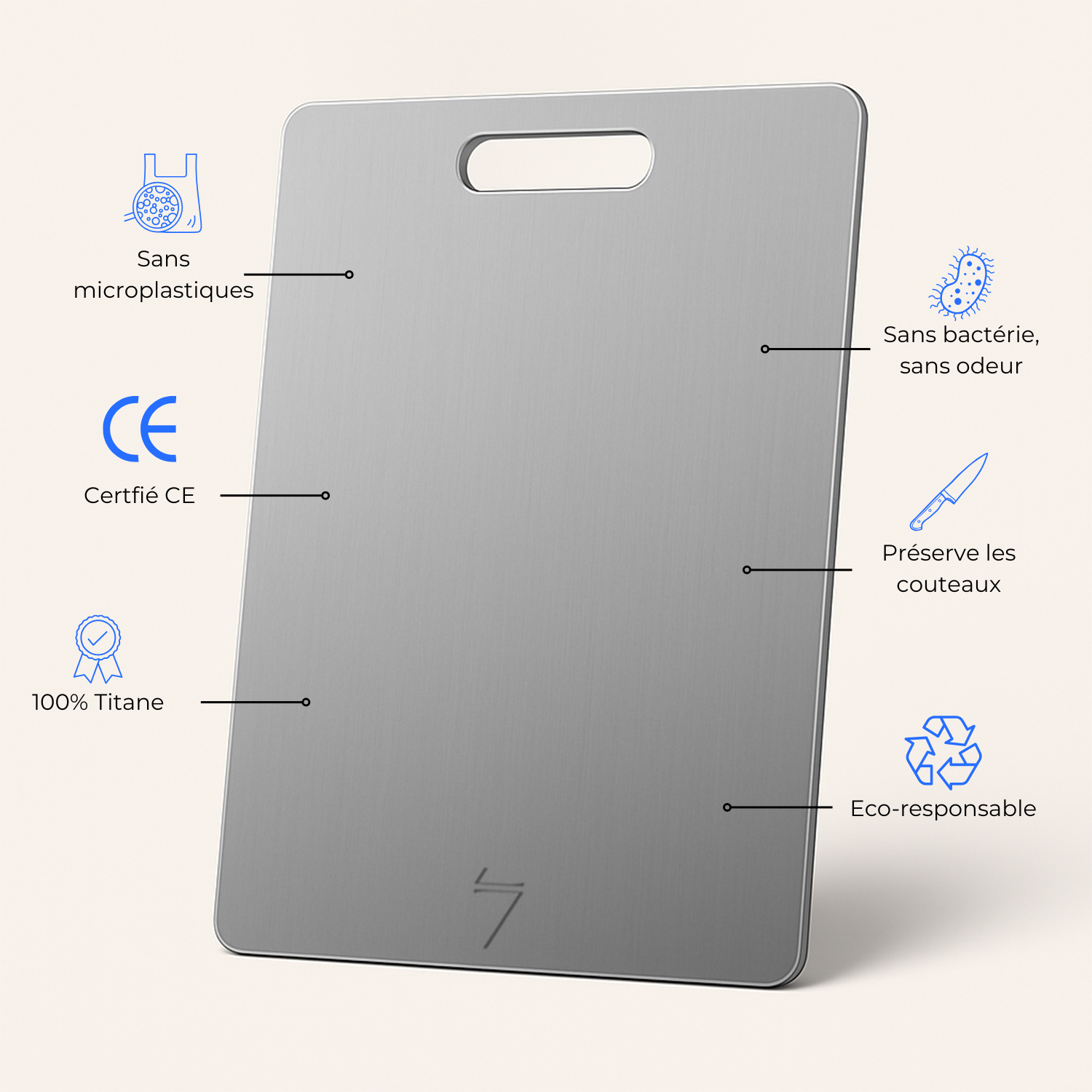 Le titane préserve le tranchant, contrairement à l’aluminium ou aux plastiques durs.