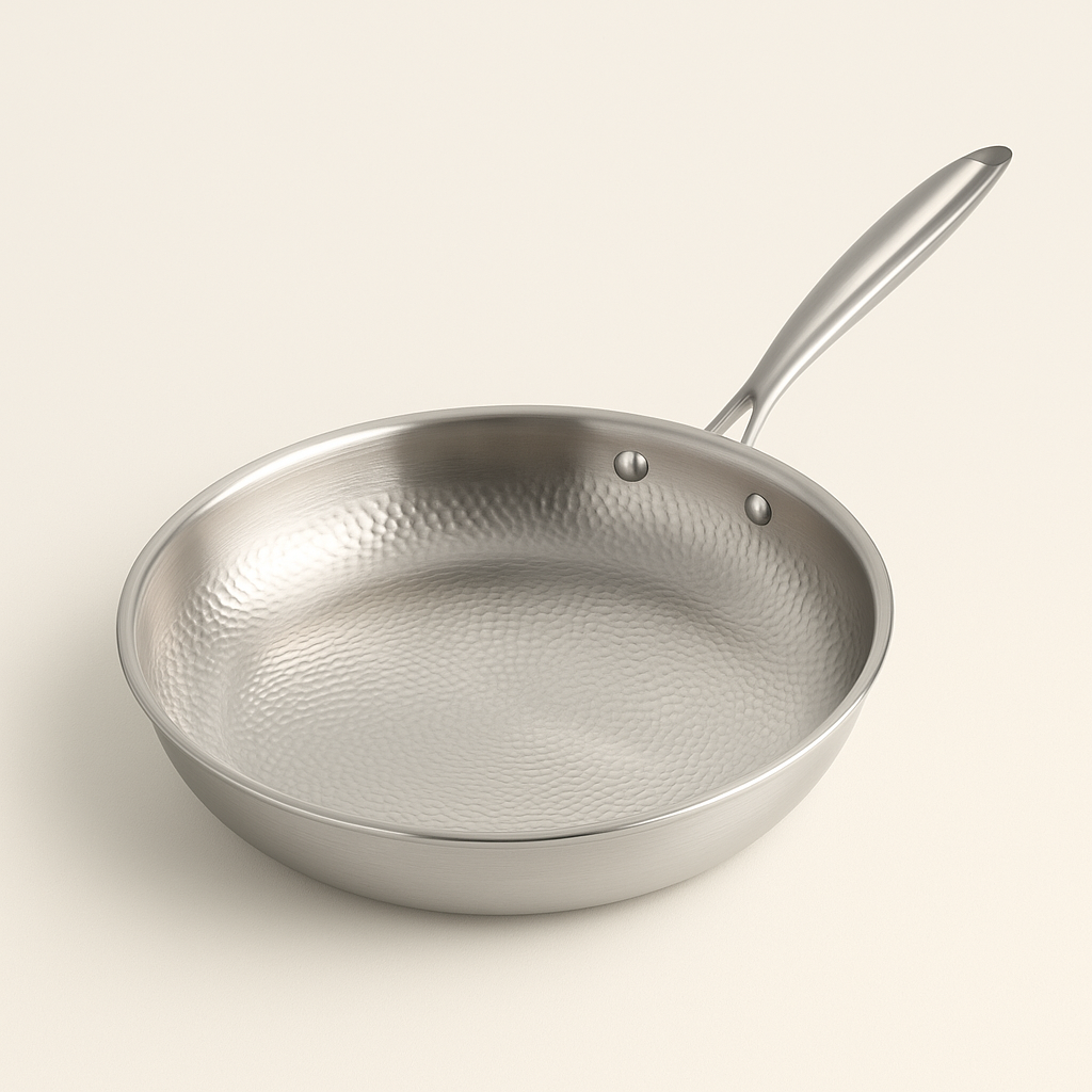 Le titane est un matériau exceptionnellement résistant, totalement inerte et simple d’entretien, qui ne craint ni l’usure ni le temps. Pour renforcer sa durabilité, nous avons conçu une surface qui résiste aux rayures et aux hautes températures. Légère mais solide, elle offre une prise en main sûre et confortable, idéale pour une utilisation quotidienne et intensive.